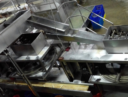 面筋卷經(jīng)輸送系統(tǒng)依次均勻的進入連續(xù)蒸煮設(shè)備,完成面筋卷的煮熟過程。